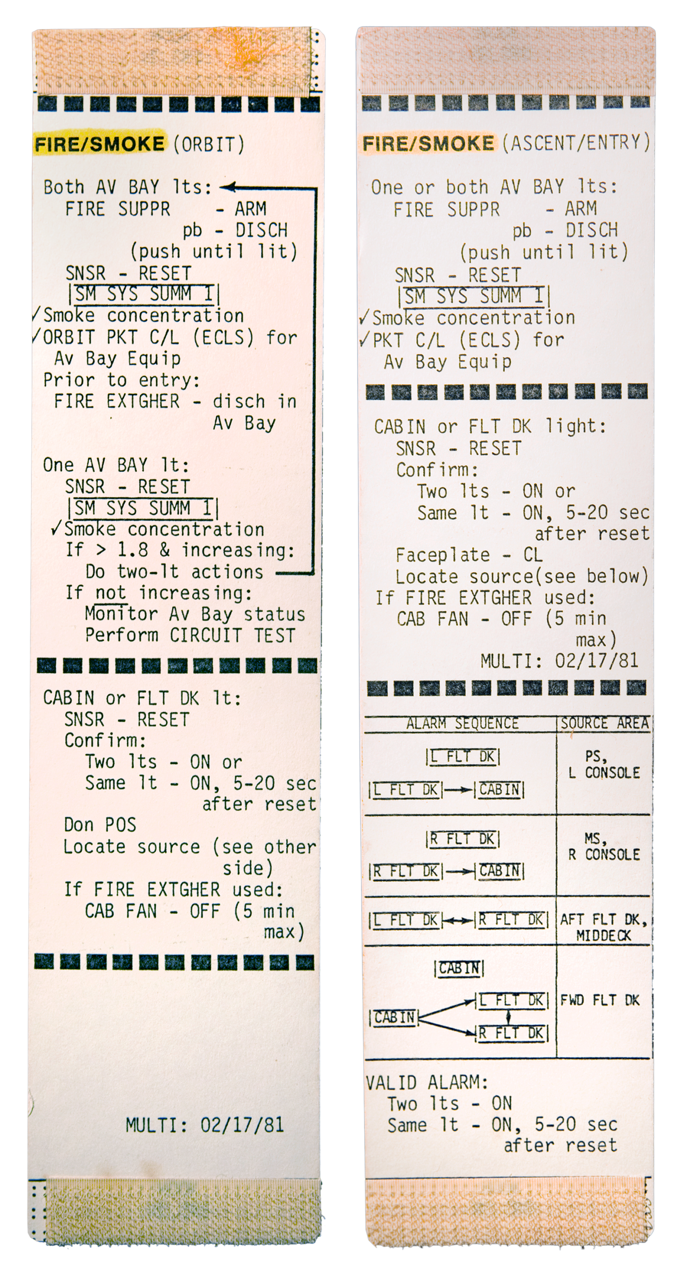 Zusammen bildeten Checklisten und Cue Cards innerhalb des Flight Data File ein redundantes, physisch robustes Informationsnetz. In einer Umgebung, in der elektronische Systeme ausfallen konnten und Zeitdruck über Leben und Tod entschied, stellte dieses analoge Dokumentensystem die unmittelbare Schnittstelle zwischen Mensch und Maschine dar – niedrigtechnologisch im Medium, aber hochwirksam in seiner Funktion.