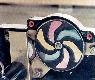 Das Farbrad mit dem Rotationsmechanismus.