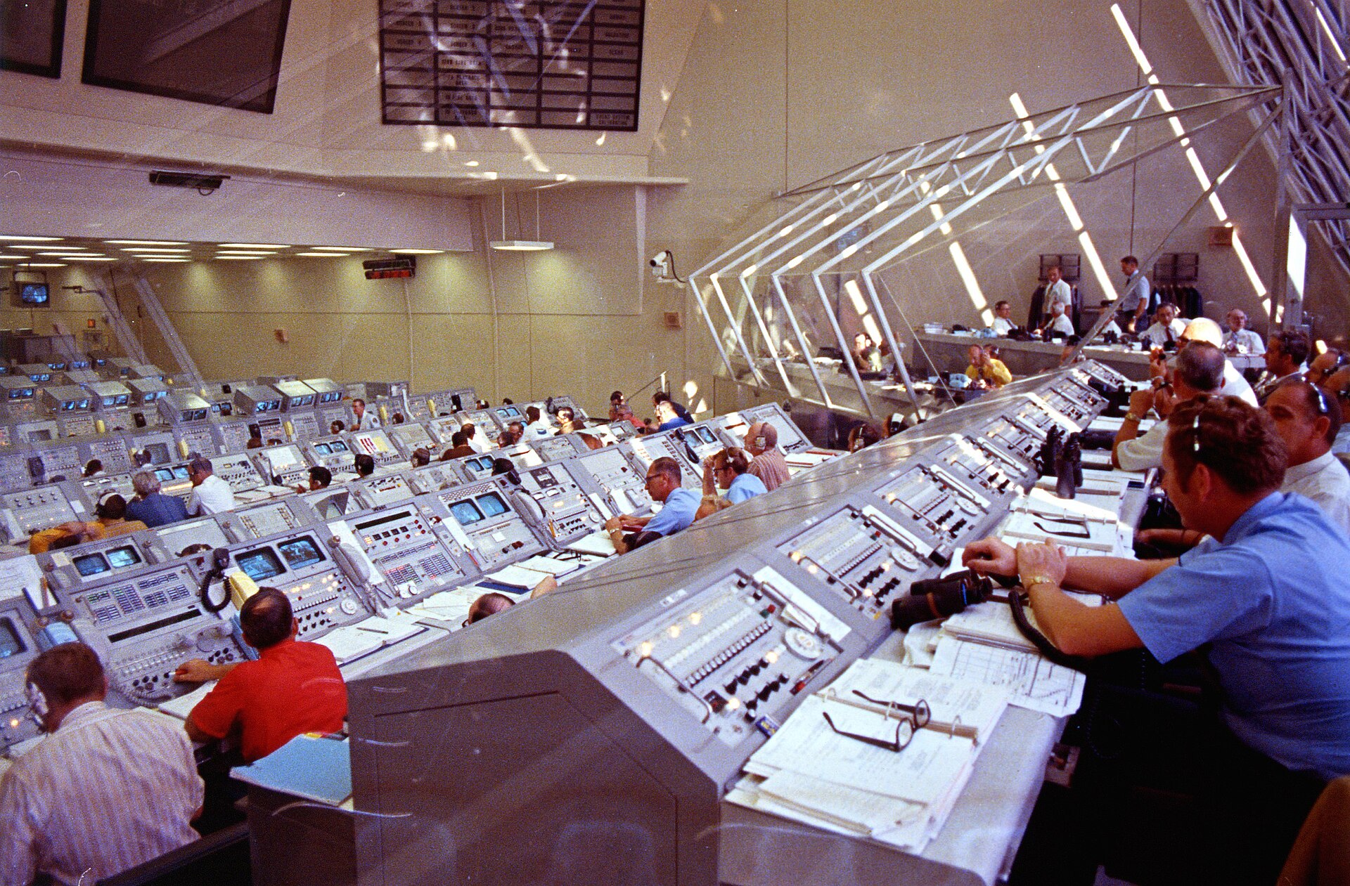 Der Raum war in mehrere Reihen von Konsolen gegliedert, ausgerüstet mit einer Vielzahl von technischen Instrumenten. Jedes dieser Panel war für bestimmte Systeme der Rakete oder der Bodenanlagen zuständig – etwa für Treibstoffversorgung, elektrische Systeme, Triebwerke, Telemetrie oder Sicherheitseinrichtungen. An diesen Konsolen arbeiteten während der Startkampagne mehr als hundert Spezialisten gleichzeitig. Ihre Arbeit begann jedoch nicht erst am Tag des Starts: Bereits in den Tagen zuvor überwachten sie die schrittweise Aktivierung und Prüfung der zahlreichen Systeme der Rakete und der Startinfrastruktur. Über Anzeigen, Schalter und Messinstrumente wurden Daten kontrolliert, Tests durchgeführt und mögliche Unregelmässigkeiten sofort analysiert.