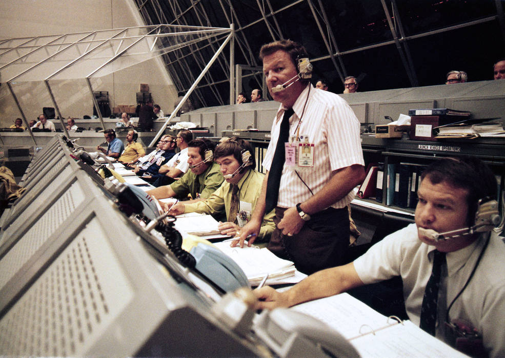 Kurz vor dem Start herrscht im Firing Room angespannte Stille. Auf den Monitoren laufen die letzten Anzeigen ein, während der Countdown unaufhaltsam gegen null läuft. Ingenieure sitzen konzentriert an ihren Konsolen, die Augen auf Instrumente, Schalter und Messwerte gerichtet. Jeder überprüft noch einmal den Status seines Systems. Sekunden später zündet die gewaltige Saturn V und hebt langsam vom Startplatz ab. Während draussen die Rakete in den Himmel steigt, verfolgen die Ingenieure im Kontrollraum die Telemetriedaten der ersten Flugsekunden.