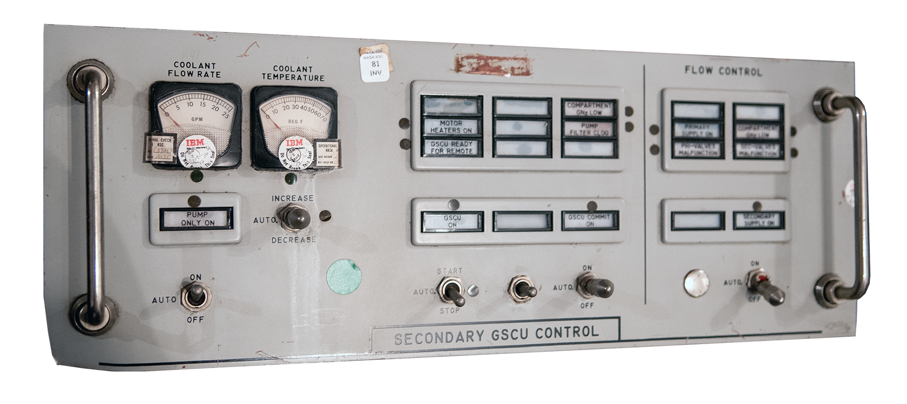 Dieses Panel stammt vermutlich aus Firing Room 3. Die «Operational Check»-Aufkleber auf den Messinstrumenten geben als nächsten Zertifizierungstermin «ASTP» an. Dies ist typisch für Panels, die sich in Firing Room 3 befanden und die bemannten Skylab-Starts sowie wahrscheinlich das Apollo–Soyuz Test Project (ASTP) unterstützten.